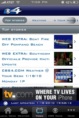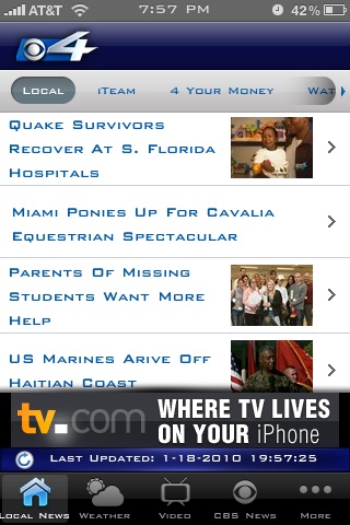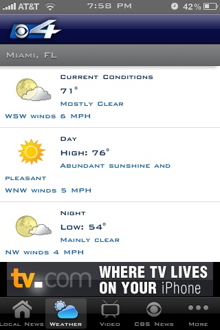 WFOR is continuing in its efforts to catch up with local media, and released an all-new iPhone app. On this app, you can check out the top stories, get a quick check on weather, and get the latest videos on top stories… right on your iPhone! You can also Tweet stories you see, and see what other WFOR reporters are tweeting, all from the iPhone app.