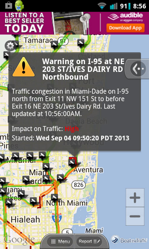 The 7 Traffic Tracker is the second app WSVN released. It’s powered by the very popular Beat the Traffic and provides real-time traffic information for major roads in South Florida, and beyond. You can add layers to the map for roadwork, incidents, traffic cameras, and see the traffic forecast for a given day or hour. Signing up for a free account, or connecting with Facebook, lets you add and store custom routes for personalized road reports, alerts and traffic predictions.