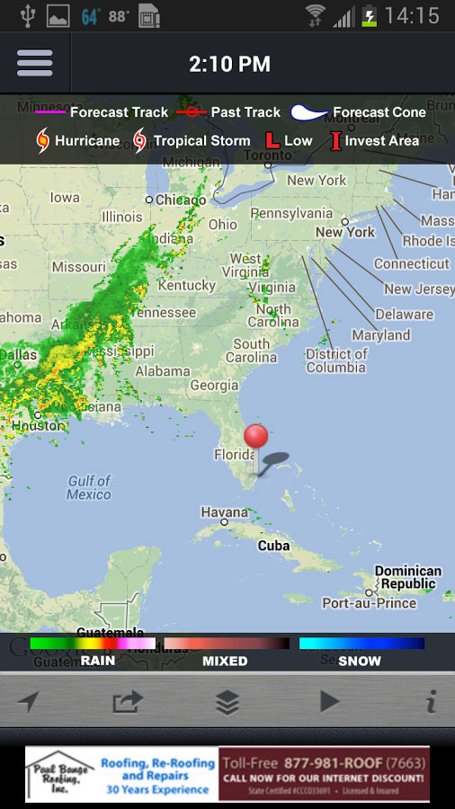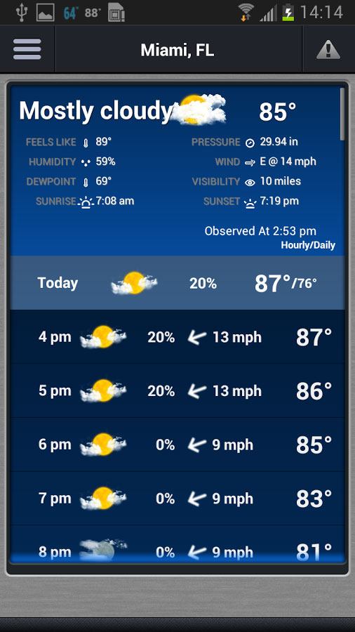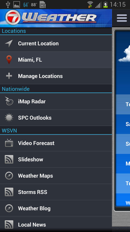 First, the long-awaited Android version of the 7Weather app that has been available to iPhone users for some time. It’s identical to the iOS version, and features a 7-day forecast with hour-by-hour conditions if you press on a particular day. A radar map with street-level zoom, radar loop, and hurricane and tropical storm track overlays. There are also direct links to a video forecast from WSVN’s meteorologists and the 7 Weather blog.