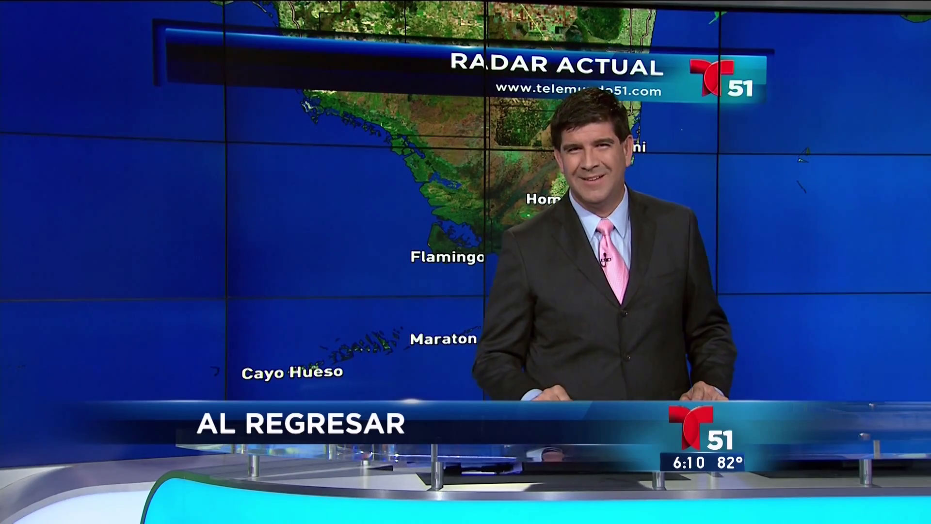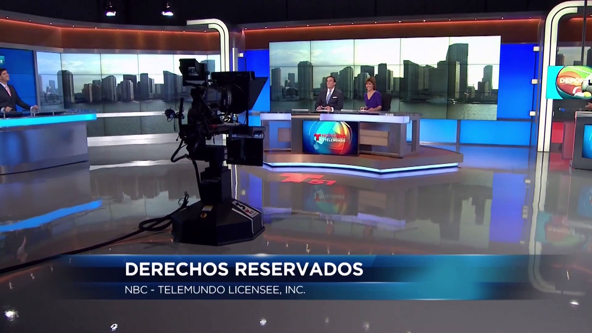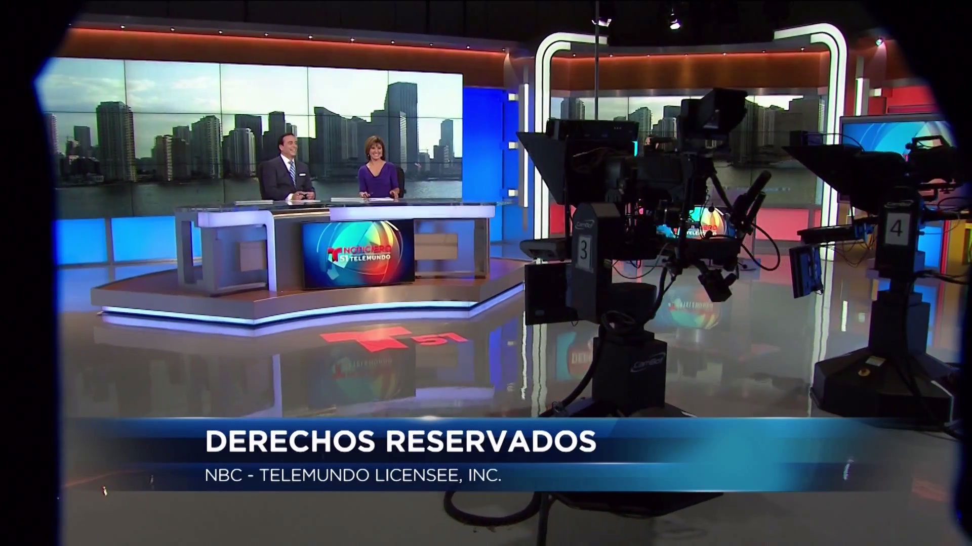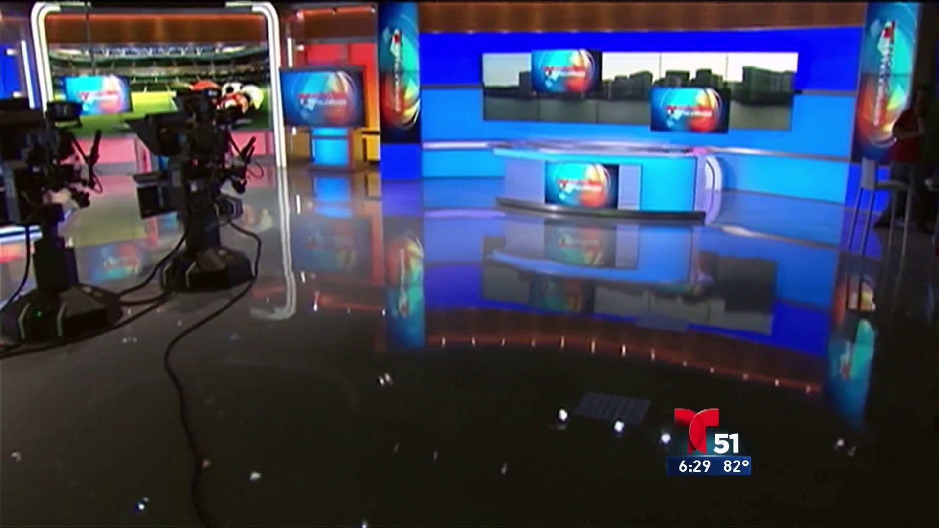 The new set features three large video walls, one used as a backdrop behind the anchors displaying a video feed of downtown Miami just like WTVJ. The other two are used as backdrops for the weather and sports areas. And a smaller video wall is used for stand up